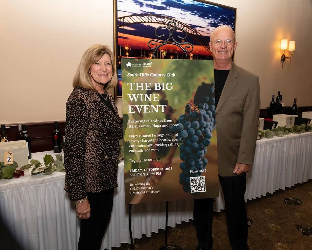 Thank you to everyone who joined us at South Hills Country Club for The Big Wine Event in support of Caring for Kids and UPMC Children’s Hospital of Pittsburgh. Your generosity and spirit of giving turned a night of wine, charcuterie, and laughter into something truly meaningful, helping us bring comfort, hope, and care to children and families who need it most.
